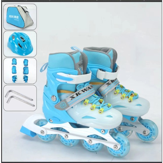Adjustable roller skate set for children (includes helmet, protective gear, roller skate bag, and wrench), stylish colors