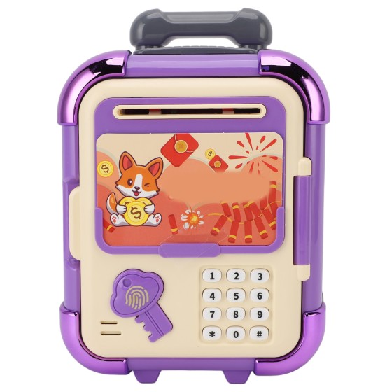 Kids Fingerprint Password Smart Piggy Bank, Suitcase Shape with Music & Auto Money Roll - Electronic Saving Box Toy Purple, Educational Financial Literacy Gift with Changeable Code Lock (Batteries Not Included)