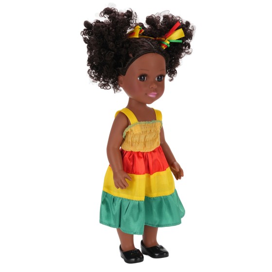 14" African American Baby Doll with Afro Puff Hairstyle, Beautifully Crafted Vinyl Doll for Kids with Changeable Outfits, Encourages Role Play & Diversity Appreciation