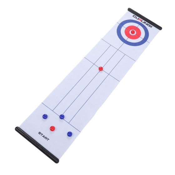 2-Player Tabletop Curling Game with Large Roll-Up Felt Mat, Portable Indoor Outdoor Sports Toy for Kids & Family, Promotes Strategy & Friendly Competition, Perfect for Family Game Night (ABS+Metal)