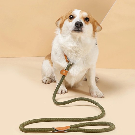 Dog Leash 130cm with Metal Clip & Comfort Grip Handle - 7 Colors (Brown, Blue, Pink, Purple, Red, Black, Neon Green) - Braided Nylon Rope, All-in-One Design for Secure Walking, Non-Slip Rubber, Heavy Duty Pet Lead