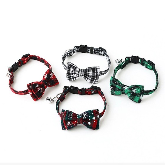 Christmas Dog Collar: 4 Styles with Bow Bell & Charms (Santa/Tree/Sock/Mitten) - 22.5-27.5cm Adjustable for Small Dogs, Tartan Red-Black/Green-Red/Green-Black/Black-White - German Holiday Walks & Market Visits