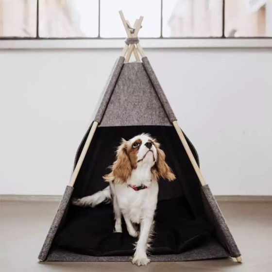 Dog Tepee Tent with Soft Felt (60x60x45/80x80x64/100x100x78cm) - Anti-Static Bed for Chihuahua to Labrador, Stable Tipi Design Creates Cozy Den & Home Decor