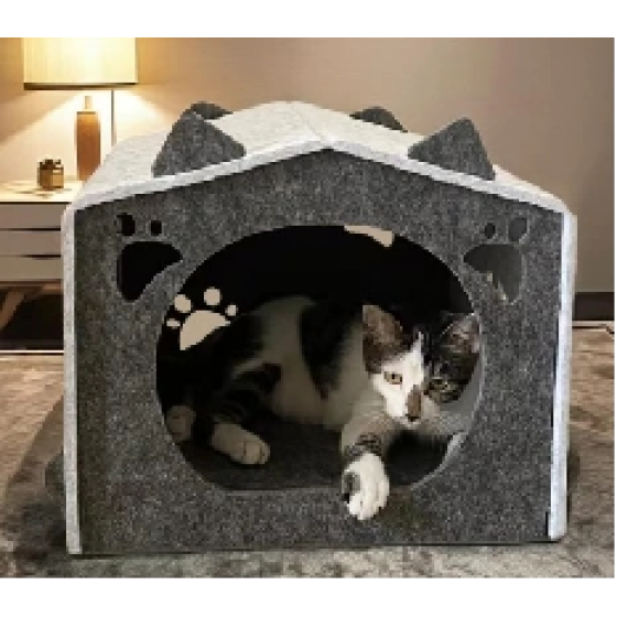 Felt Cat Cave Bed 40x30x60cm - Cozy Hideout with Observation Roof & Paw-Friendly Texture, Scratch-Resistant Design Doubles as Home Decor with Paw-Print Details
