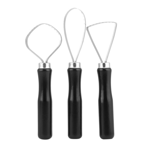 3PCS Clay Sculpture Tools with Teeth, Large Loop Rib Tools for Pottery, Wood Handle Modeling Tools for Ceramics, Sculpting, Trimming, Batik - DIY Wax Print Art Craft Supplies