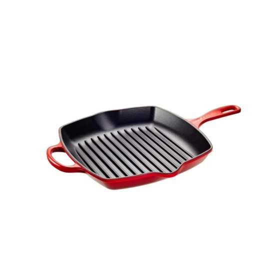 LFGB/FDA Certified - lideer Red Square Enameled Cast Iron Steak Pan | 27cm Thickened Warp-Resistant Bottom | Three-Layer Non-Stick Coating | Compatible with Induction Cookers
