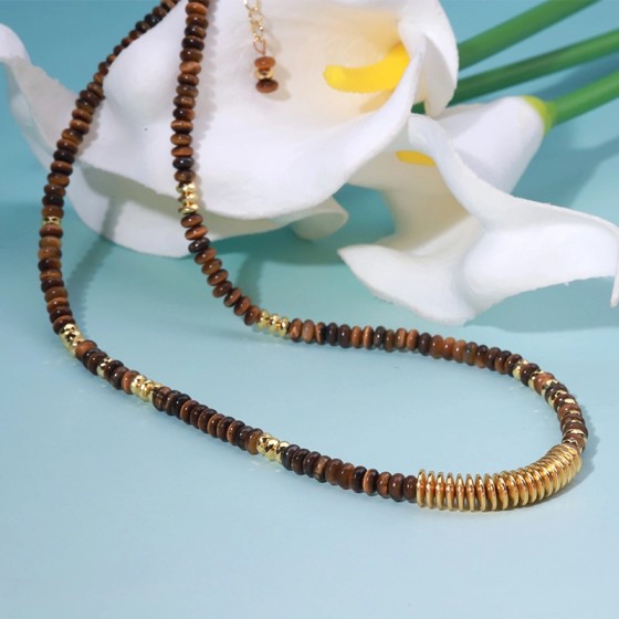 Beige mobile phone strap chain 120cm | German everyday style | 44g ultra-light bead chain + gold spacer | Metal buckle to prevent loss while cycling | Individually packaged ONB2505099 runshi
