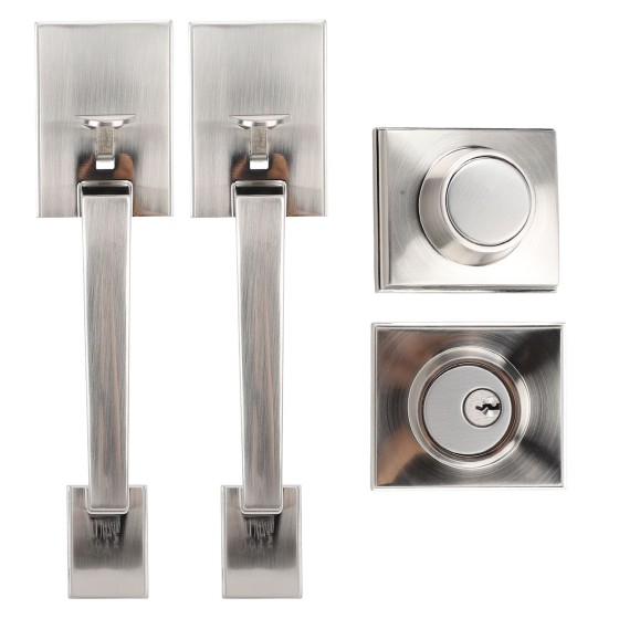 Modern Double Door Handle Set with Lock & Dummy Handle | Keyed Entry, Adjustable Backset, Left/Right Hand Reversible | for Garden Gates, French Doors | White/Black Finish