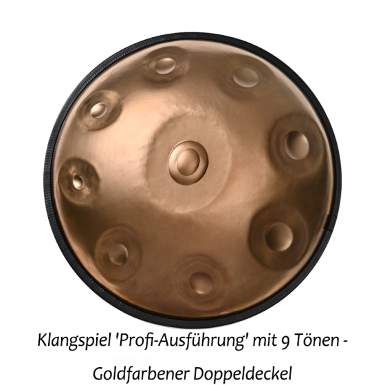 Single Handpan Drum (22"): Gold/Black Nitrided/Vintage Copper - 9 Notes D Kurd Scale | Helmholtz Resonance | Hand-Tuned + Rubber Edge for Stage Performance