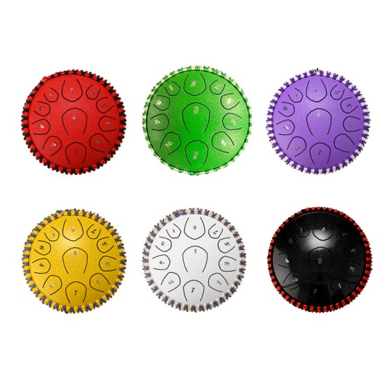 Single 14" Steel Tongue Drum "Ruyi" (15 Tones/2 Octaves): Spotted Red/Yellow/Green/Purple/Black/White w/Hemp Rope & Bag + Mallets | Titanium Alloy | Pure Resonance