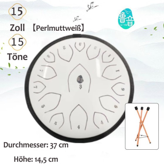 Single 15" Steel Tongue Drum "Gold Shield" (15 Tones): Pastel Green/Dove Grey/Pearl White w/Anti-Slip Base & Full Kit (Bag+Stand+Mallets) | Drop-Proof | Sustain Sound