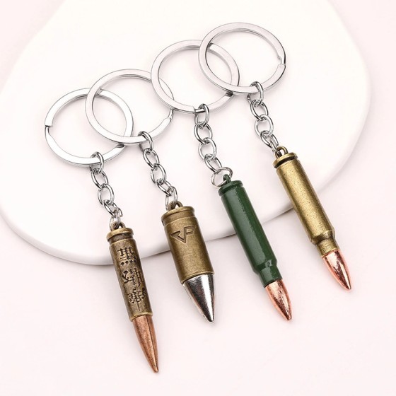 Einzelstück | Robuster Metall-Schlüsselanhänger im Taktischen Design (4 Modelle: Grün / Antikbronze mit Schrift / Antikbronze mit VF-Logo / Gold) | Mit Schlüsselring (Ø 32mm) & Kette (19mm) | Stylisches & Praktisches Accessoire