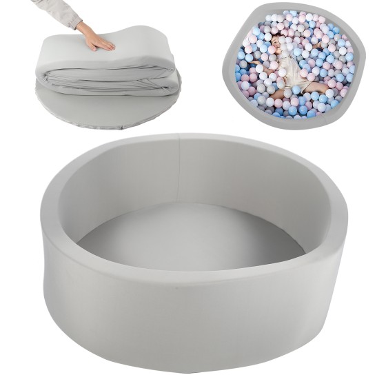 Kinder Bällebad mit Gedächtnisschaum, Graue Baby Spielzone Innen/Außen, Waschbare Bällewanne mit Antirutschboden, Weicher Spielteppich für Kinder ab 12 Monaten, 800 Bälle
