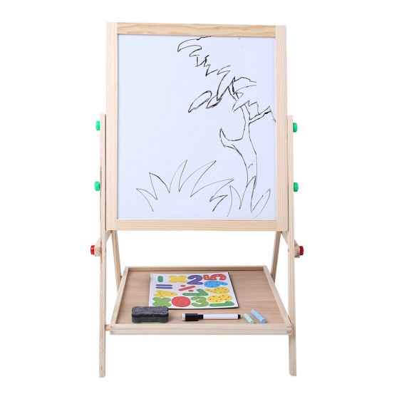 Kinder Staffelei aus Kiefernholz Höhenverstellbar, Kippsicher 2-in-1 Tafel Whiteboard mit Maltisch, Kreativ Zeichenbrett für Jungen Mädchen ab 3 Jahre (Zubehör inklusive)