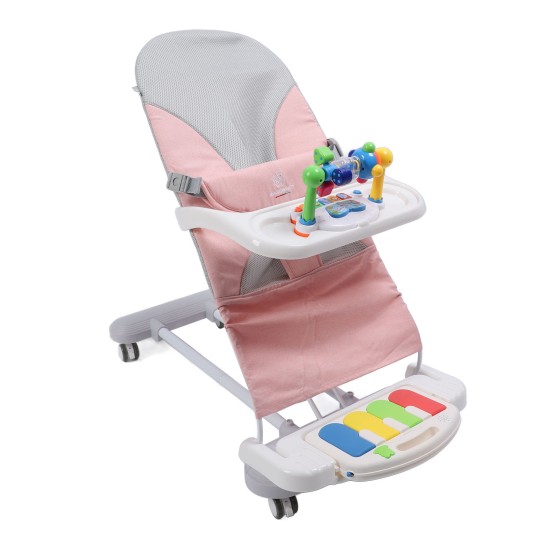 Baby Wippe Rosa mit Musik-Spielzeugbogen, Automatische Schaukel ohne Batterien, Klappbar & Rollen, 3-fach Verstellbar, H-Stahlgestell, Für Babys 9 Monate-2 Jahre, Wohnung