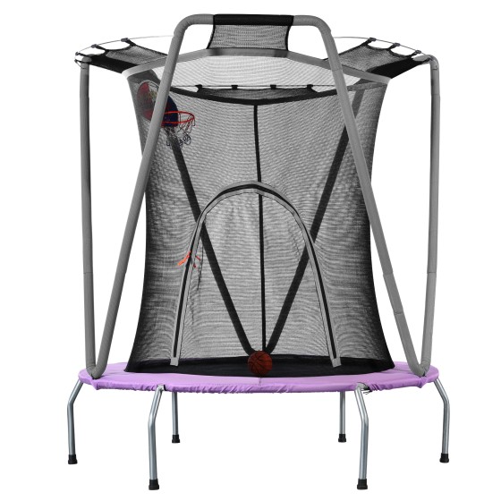 Kindertrampolin 157cm Mit Sicherheitsnetz & Korbballfunktion, Rundes Gartentrampolin aus Verzinkter Stahl, Innen- und Außenbereich, U-Form Tür, Max. 50kg, Für Kinder ab 3 Jahre (Grau)