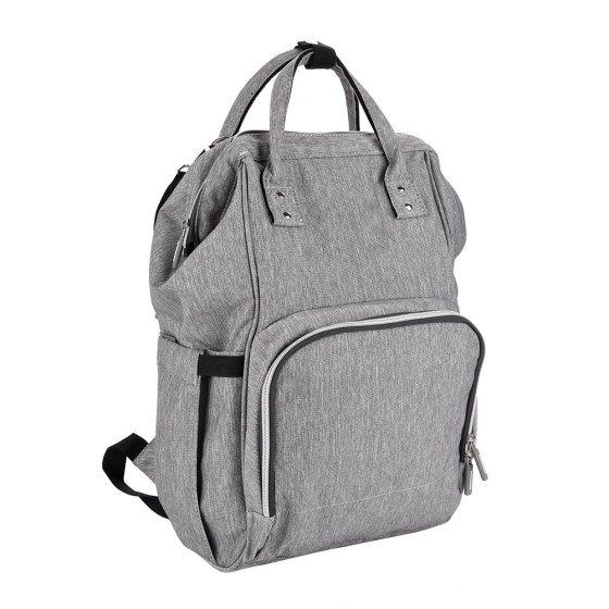 Großer Wickelrucksack Grau mit USB-Ladeport, Wasserdichte Windeltasche mit Isoliertasche, Leichter Baby Rucksack für unterwegs, Kinderwagen Befestigung
