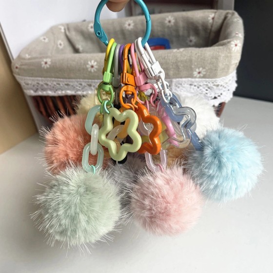 Einzelner Niedlicher Flauschball-Schlüsselanhänger mit Karabiner (5 Farben: Orange, Gelb, Blau, Lila, Mint) - Ø50mm Kuschelpompon + 29mm Sternanhänger, 120mm Länge - Für Schulranzen, Rucksack & Schlüsselbund