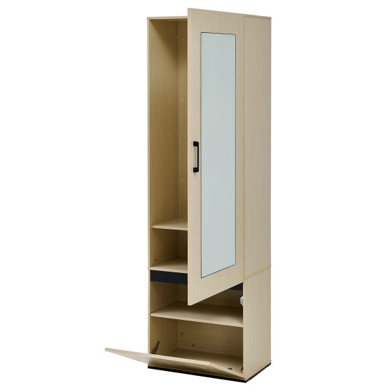 Slim Coat Stand Cabinet with Full-Length Mirror & Pull-out Clothes Rail - Modern Hallway Wardrobe for Small Spaces, Tall Storage Cupboard