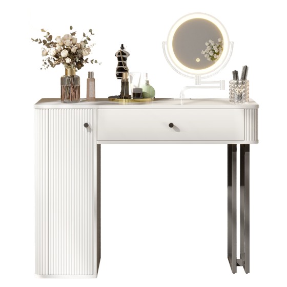 Vanity Table with LED Mirror & 3-Color Lighting - Makeup Dressing Table with 9-Divider Drawer, Large Storage, Modern White Design