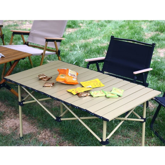 Goldfarbenes Metall-Gestell + Holzoptik-Platte Campingtisch Klappbar 95x50x50cm (34,4kg) - 4 Tischbeine + Klappgestell + Tragetasche (Beige). Ideal für Camping & Picknick in deutschen Parks - Stahl, PP-Klickverschlüsse & Oxfordstoff für platzsparenden Transport!