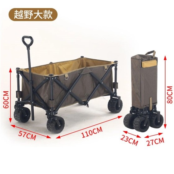 Klappbarer Campingwagen Outdoor mit Großem Fassungsvermögen (110x57x60cm) - Transportwagen für Camping, Einkauf, Kinder & Picknick - Platzsparend gefaltet (27x23x80cm) - Stahlrahmen, Oxfordstoff, Geländeräder