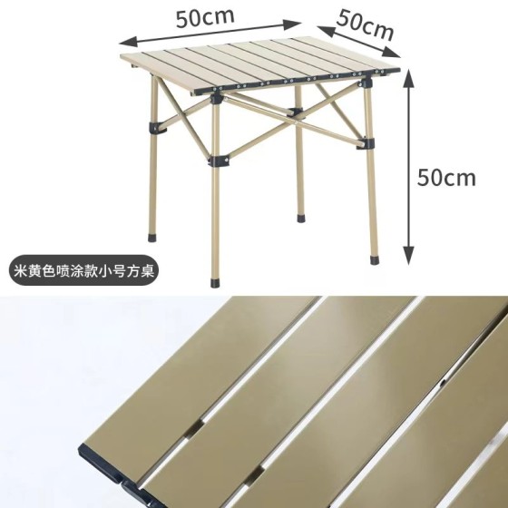 Goldfarbenes Metall-Gestell + Holzoptik-Platte Campingtisch Klappbar 95x50x50cm (34,4kg) - 4 Tischbeine + Klappgestell + Tragetasche (Beige). Ideal für Camping & Picknick in deutschen Parks - Stahl, PP-Klickverschlüsse & Oxfordstoff für platzsparenden Transport!