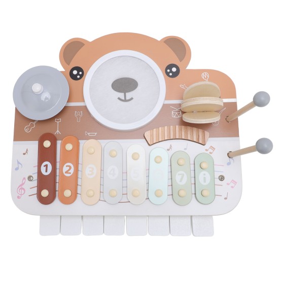 Holz Musikzentrum für Kinder mit Klavier & Schlagzeug - Multifunktions-Lernspielzeug zur Förderung von Rhythmusgefühl & Motorik, aus Verbundholz & Eisen (ca. 34x32cm)