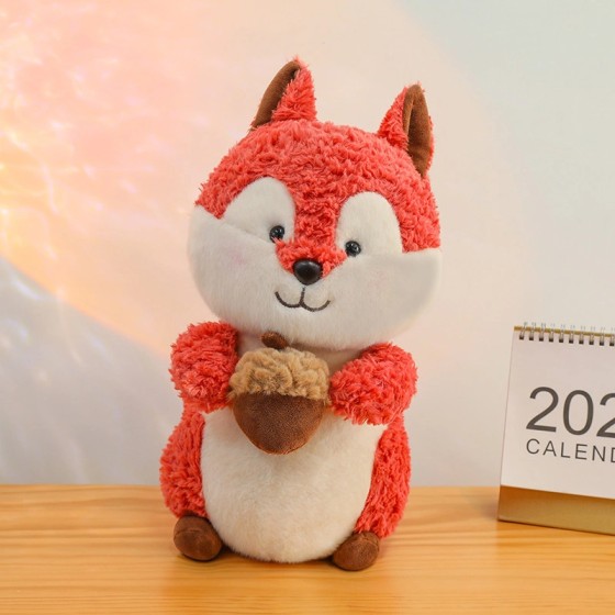 25cm Rot-Weiß-Braun Plüschhörnchen mit Eichel - Kuschelkissen Waldtier für Kinderzimmer & Schreibtisch - Handgenähtes Stofftier mit Lächeln