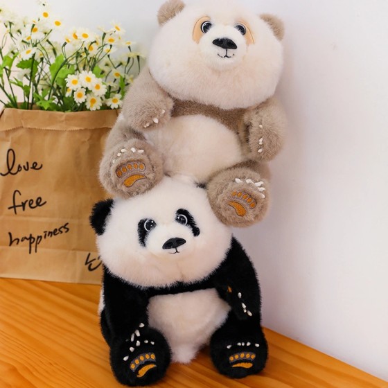 🐼 Sitzender Panda Plüsch - 23cm Bürohelfer|35cm Kinderkuscheltier|45cm Sofapartner - Klassisch Schwarz-Weiß + Cappuccino-Beige - Dreifach genähte Sicherheit für Alltagsszenen