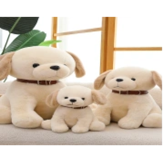 Labrador Plüschhund - 20cm Schreibtischbegleiter oder 25cm Einschlafhilfe - Toastbeige mit schokoladenbraunem Halsband - Realistische Gesichtsausdruck + Alltagstaugliches Design im Recyclingkarton