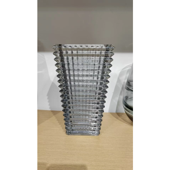 Rechteckige Glasvase mit vertikalen Rillen Ø14,2cm H28cm - Präzise geometrische Struktur für moderne Raumgestaltung | Stapelbare Tischdekoration (Wohnzimmerregal/Büro) | Einzelvase mit Lichtbrechungseffekt