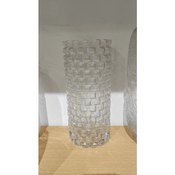 Strukturierte Glasvase mit Würfelrelief Ø11,8cm H30cm - Stabiler Sockel Ø13cm für sicheren Stand | Modernes Lichtspiel auf Esstisch & Sideboard | Einzelvase mit 3D-Optik für deutsche Wohnkultur