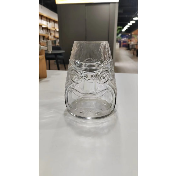 Tiki-Style Glasvase Ø7,5cm H19cm - Polynesisches Maskendesign für Cocktails (Mai Tai/Pina Colada) | Urlaubsflair für Home-Bar & Deko | Stabiles Partyzubehör mit Gesichtsrelief | Einzelvase