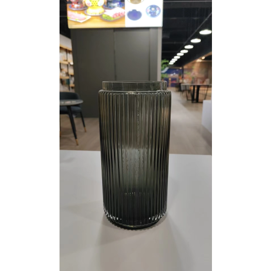 Anthrazitgraue Glasvase mit Vertikaler Streifenstruktur - Ø12.0cm ×30cm Hochwertige Einzelglasvase für Wohnzimmerregal oder Eingangstisch, Dekorative Blumenvasen mit Schwerem Glas (1 Stück)