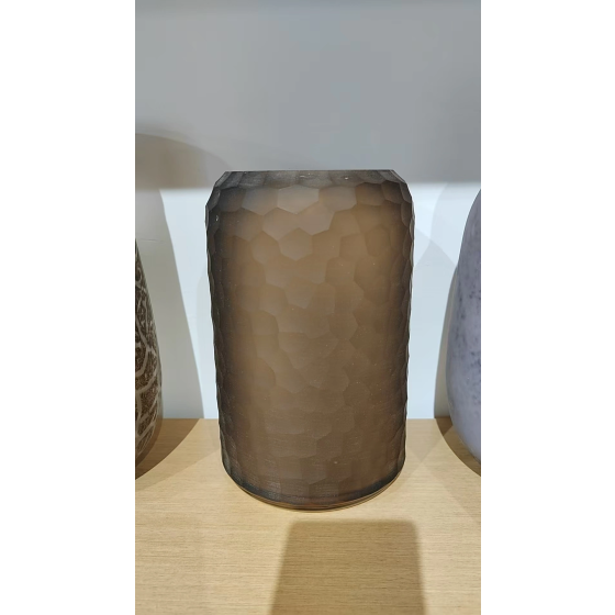Tiefbraune Glasvase mit 3D-Wabenstruktur Ø10,0cm H36cm - Kunstvolle Deko für Sonnenblumen & Trockensträuße | Robuster Alltagsgebrauch (Fensterbank/Diele) | Einzelvase mit strukturierter Oberfläche für Inneneinrichtung & Atelier