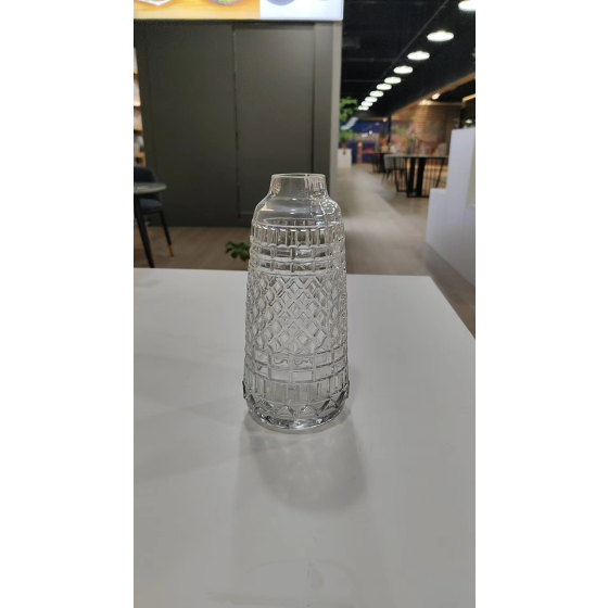 Klare Glasvase mit geometrischem Muster Ø3,5cm H24cm - Antik Stil Tischdekoration für Blumenarrangements | Sichtbare Blumenstängel | Wohnaccessoire Deko für Fensterbank, Esszimmer & Inneneinrichtung | Einzelvase