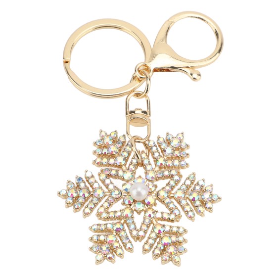 Schneeflocken Schlüsselanhänger, Weiß-Iridescent Strass Stein Anhänger mit Perlen für Damen, Kristall Schlüsselband für Tasche & Geldbörse, Geschenk für Freundin