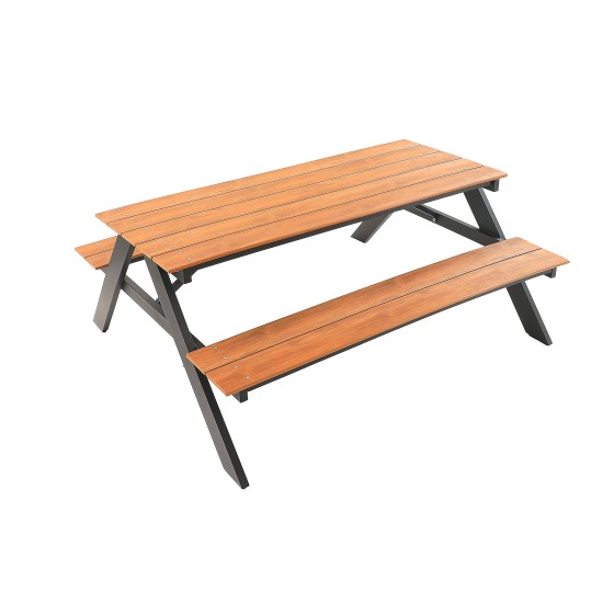 【Muster-Vorbestellung】Gartentisch mit Sitzbank Kombi-Set 175x72cm | Outdoor Tischgruppe aus Kunstholz & Metall | Wetterfest & pflegeleicht | Terrassenmöbel Set (Braun/Schwarz)