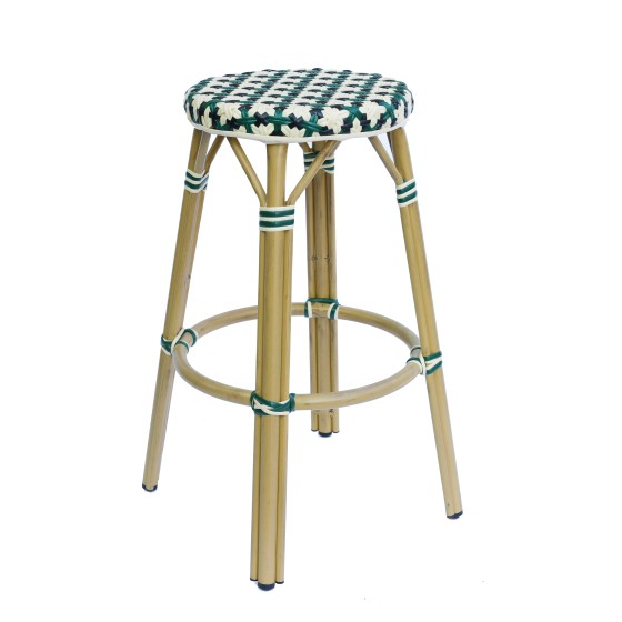 【Muster-Vorbestellung】Outdoor Barhocker 75cm PE-Rattan Alu 3,4kg Leicht Biergarten Hocker 5 Farben: Einfarbig/Weiß-Schwarz Karo/Grün-Weiß Karo/Schwarz-Weiß Karo/Burgunder-Rot-Weiß Karo 43cm Standbreite ohne Montage