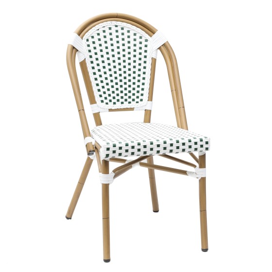 【Muster-Vorbestellung】Gartenstuhl aus PE-Rattan & Aluminium 46×57×85cm|Sitzhöhe 44cm|3 Designs: Naturholz-Weißgrün Karo / Dunkelbraun-Schachbrett / Naturholz-Rotweiß Hahnentritt|Atmungsaktiver Bistroklappstuhl