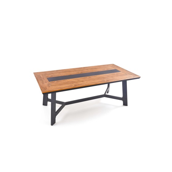 【Muster-Vorbestellung】Robuster Beiger Tisch 240x100x75 cm (Indoor/Outdoor) - Holzoptik Platte & schwarzes X-Metallgestell, Flexibel für Garten, Terrasse, Küche, Büro