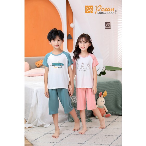 Kinder-Kurzarm-Hausanzug-Set mit niedlichen Cartoon-Motiven – bequeme, kühle und hautfreundliche Schlafanzüge für Jungen und Mädchen.