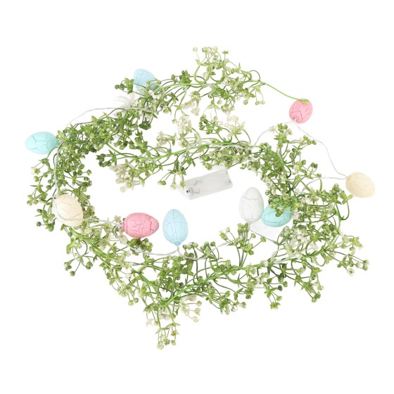 Wahlweise: 175cm Ostereier-Ranke ODER 33cm Kranz - Rustikale Osterdeko aus Kunststoff (Batteriebetrieb) - Für Kamin/Treppe/Fenster ca.288g/470g - Mit Eierlichtern