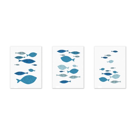 3er-Set Skandinavische Fisch-Motive: Leinwanddruck ohne Rahmen 30x40cm (ca.96g) - Illustrative Wandbilder für Büro/Hotel - Computerdruck auf Polyester als Geschäftsdekoration