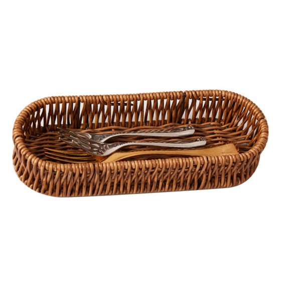 Aufbewahrungskorb mit Rattanoptik für Besteck & Brot | Spülmaschinenfester Kunststoff (120g) | Platzsparende Spülküchen-Organizer 35x25cm | Deko für deutsche Haushalte + stapelbar