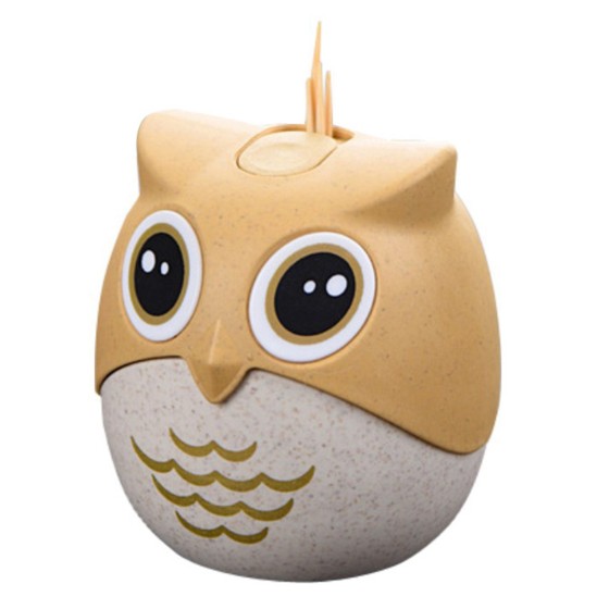 Eulenförmige Zahnstocherbox aus Weizenstroh & PP | Umweltfreundlicher Aufbewahrungsbehälter für Küche/Arbeitszimmer (80g Inhalt) | Deko mit 110g Gesamtgewicht | Praktisches Geschenk für deutsche Haushalte