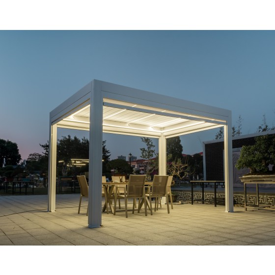【Muster-Vorbestellung】Maßgefertigter Pavillon 3x4m mit elektrischen Lamellen & LED-Beleuchtung (Einzelstück) | Alu-Rahmen | Optional Insektenschutz/Stoffvorhänge/Rollos | Terrassen-Überdachung für Garten