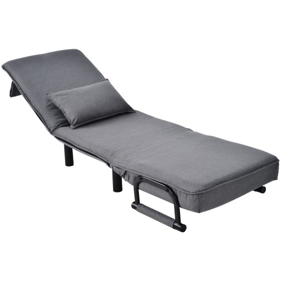 Umwandelbarer Schlafsofa-Sessel mit 6-fach verstellbarer Rückenlehne, Klappbarer Loungesessel bis 150kg belastbar, Schlafsessel zum Ausstrecken mit Metallrahmen für Wohnzimmer & Homeoffice, Grau