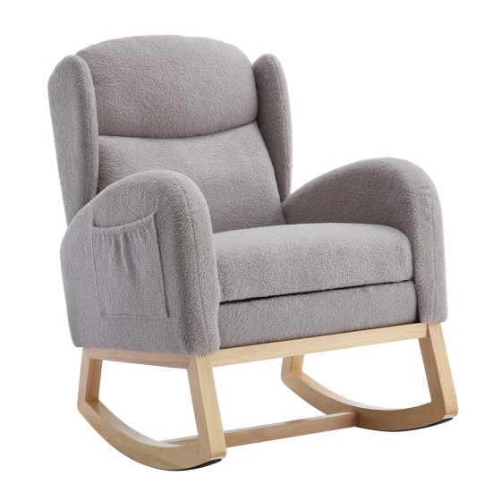 Schaukelstuhl mit Fußhocker & Seitentasche | Höhenverstellbarer Stillstuhl und Lounge-Sessel aus Teddy-Stoff | Hohe Rückenlehne, Ohne Montage | Grau